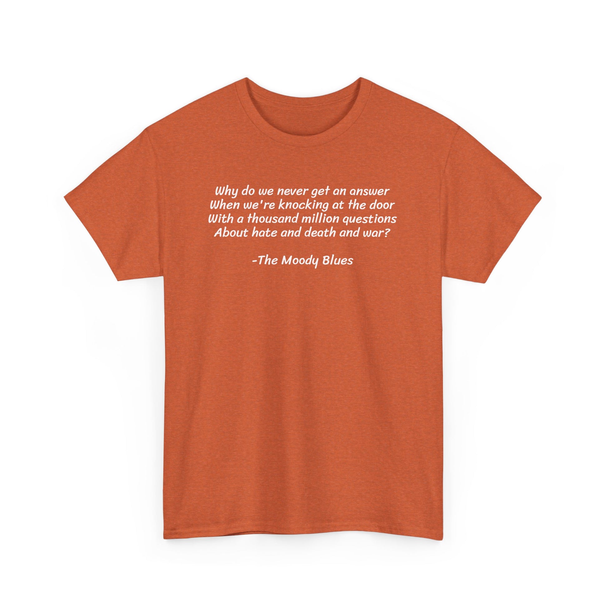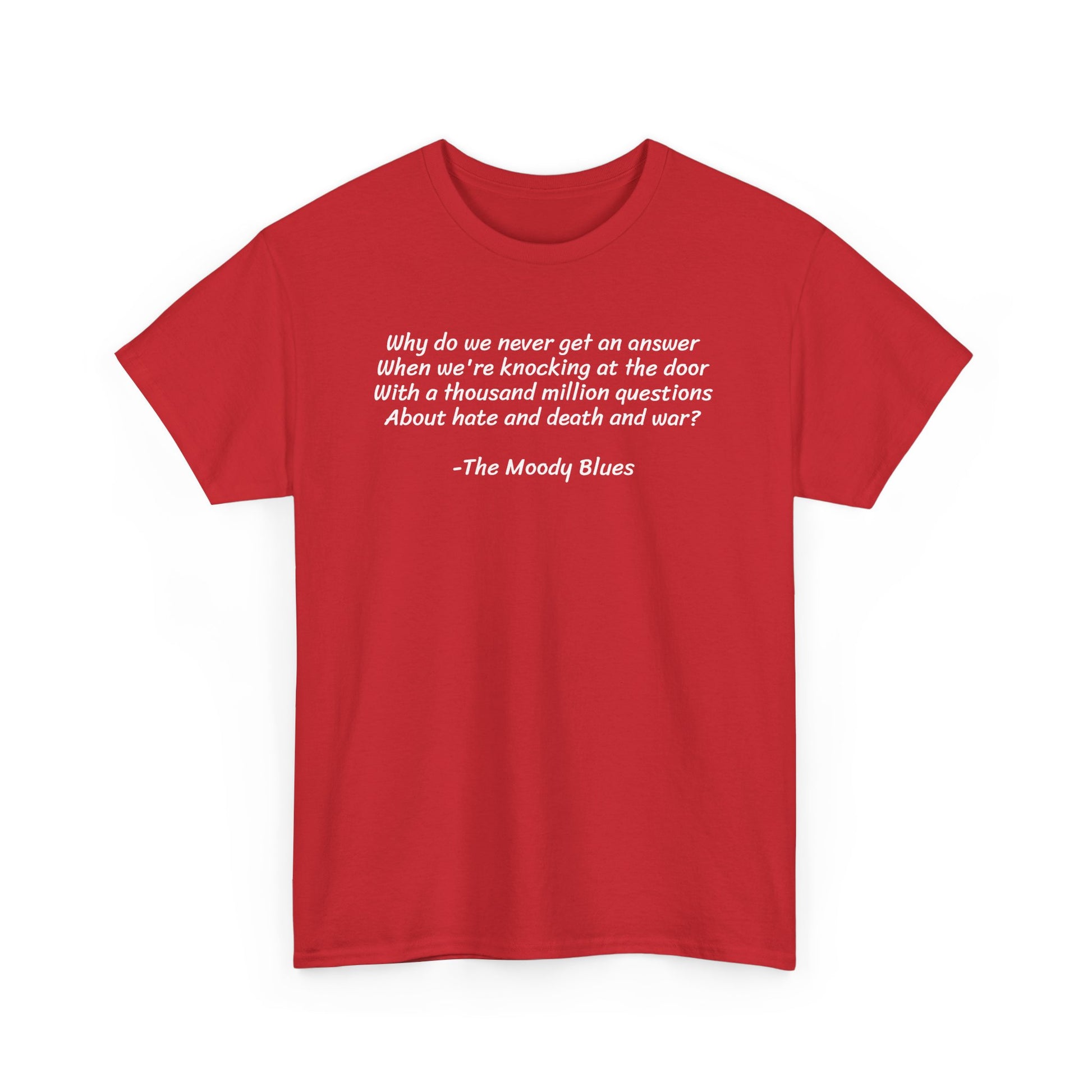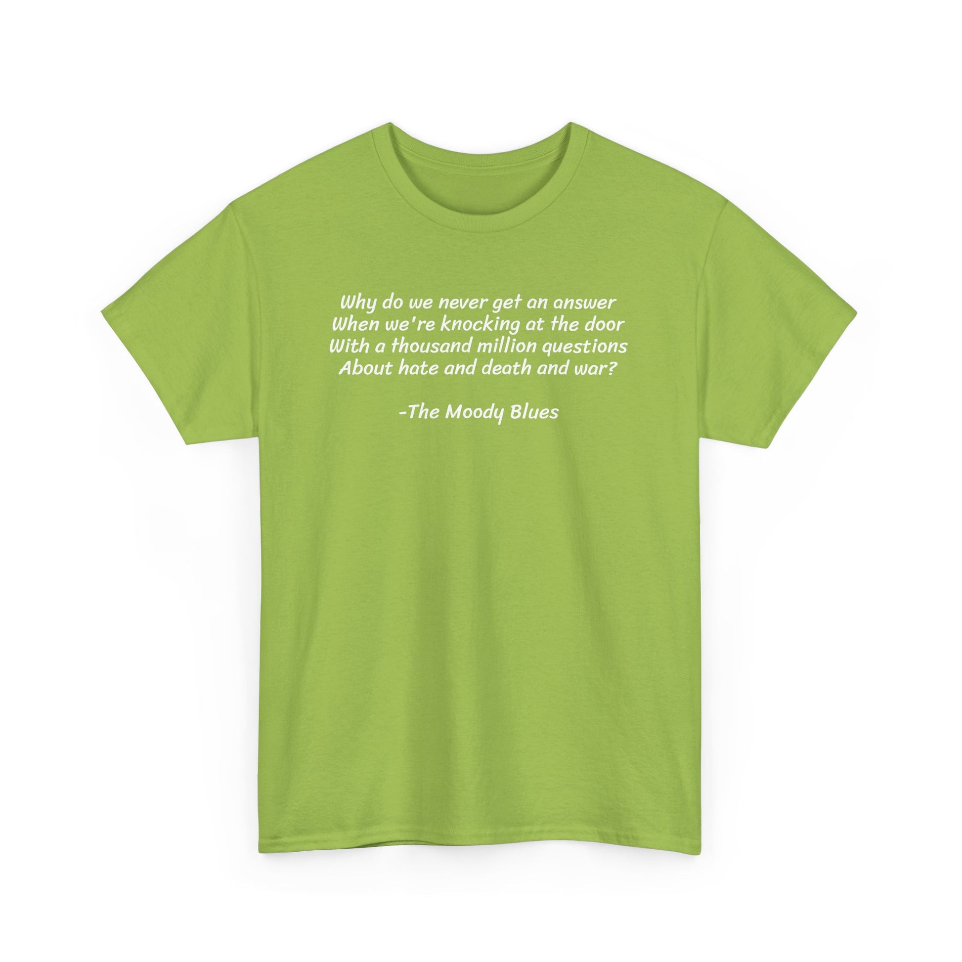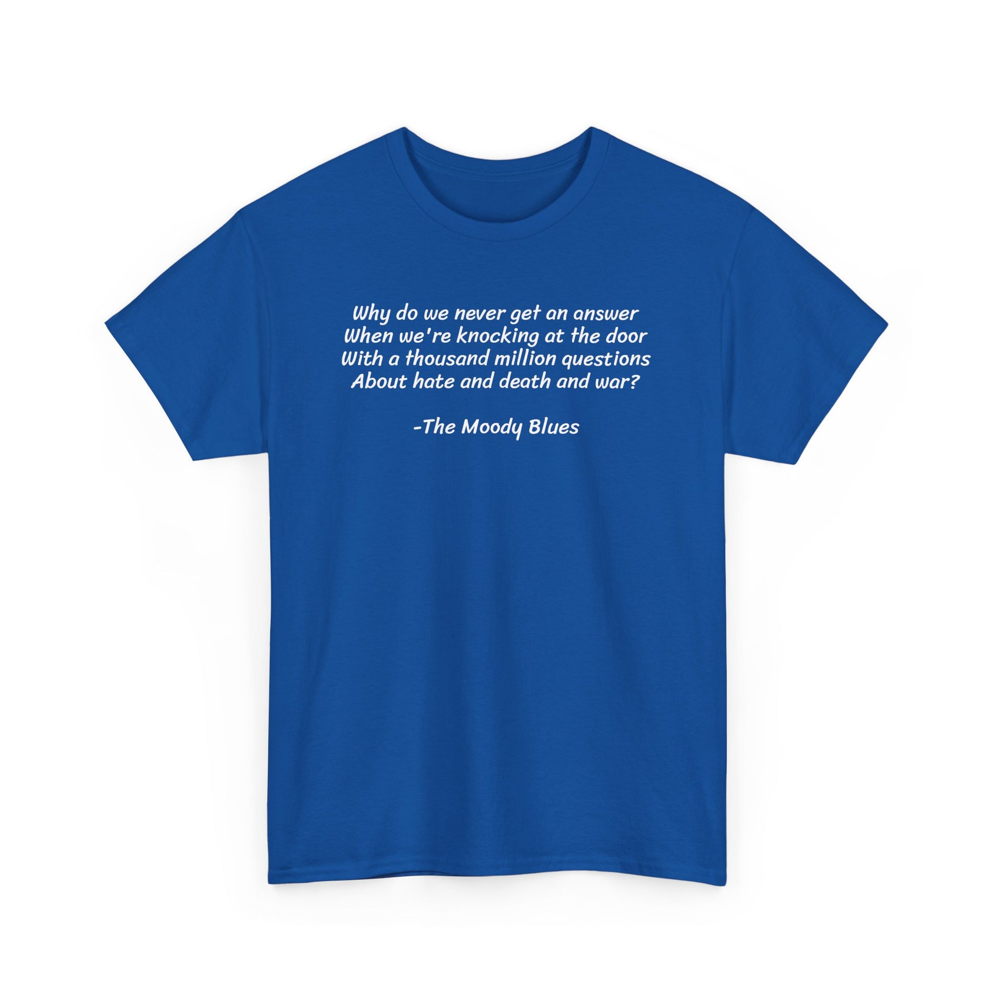Why Do We Never Get an Answer When We Talk About Death and War? The Moody Blues, Spiritual T-Shirt
