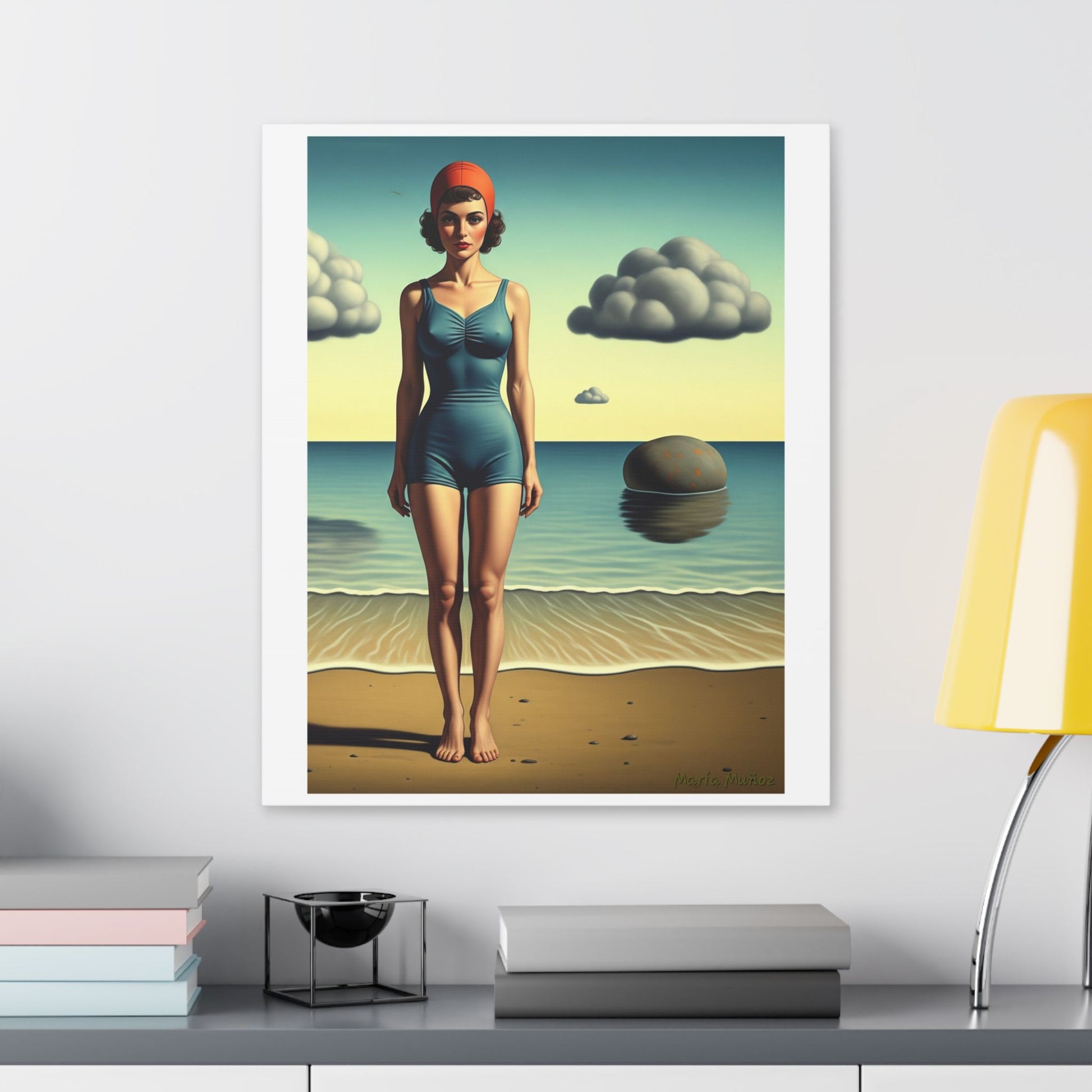 Woman at the Beach, Rene Magritte Art Style 'Designed by AI' Canvas Art Print