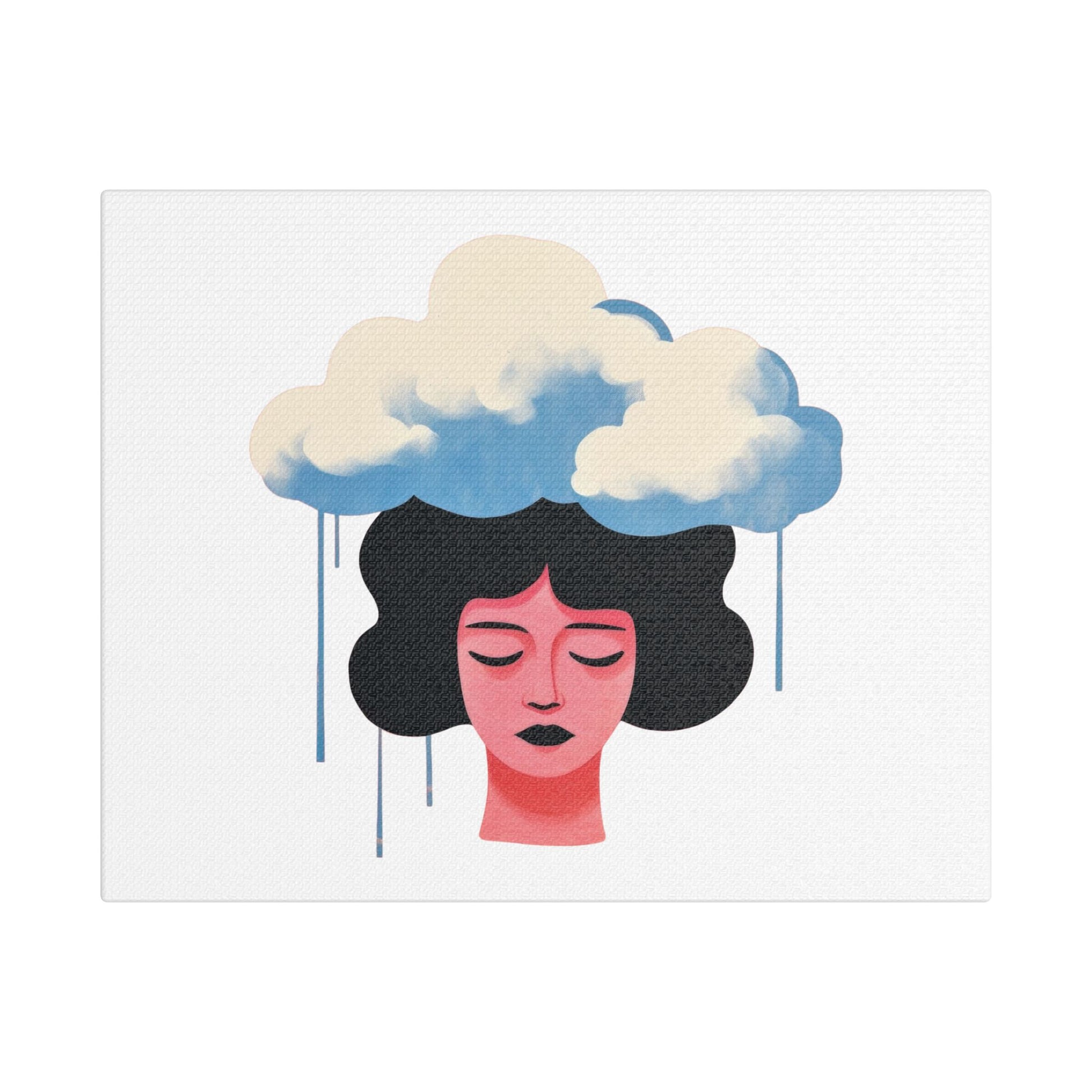 Woman Under a Cloud Portrait, Cartoon Art Print on Canvas