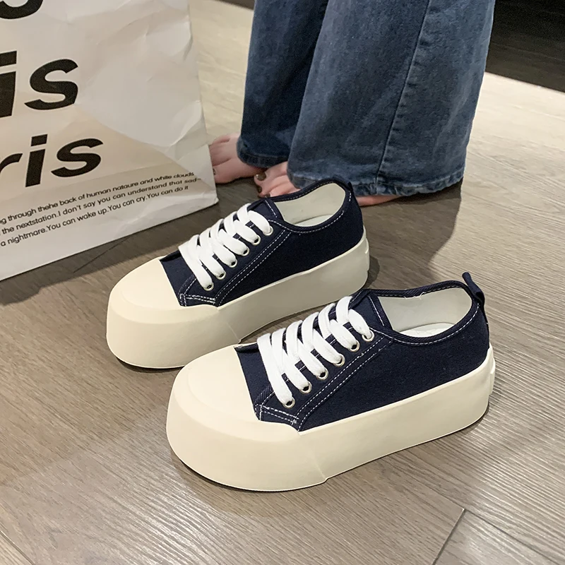 Classic denim thick-soled, inner height-boosting canvas shoes. Choose from colours: Dark Blue, White, Wine Red.