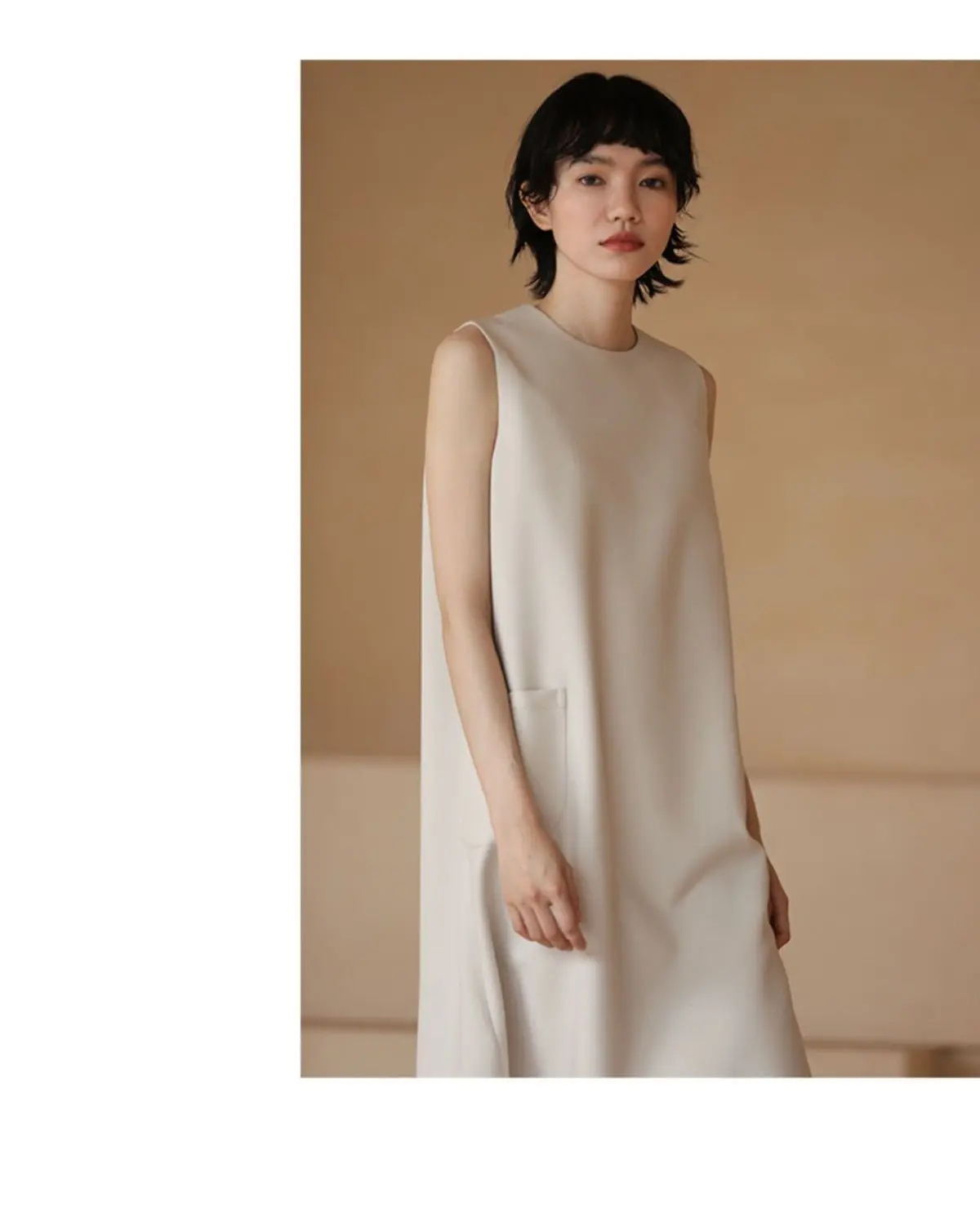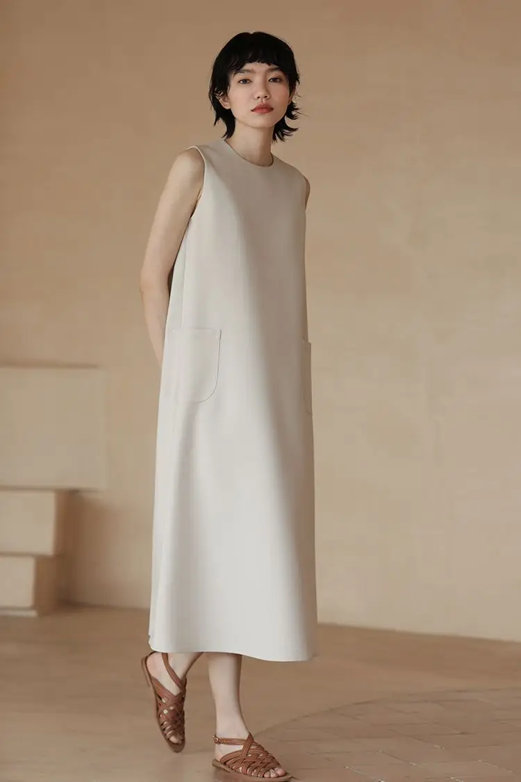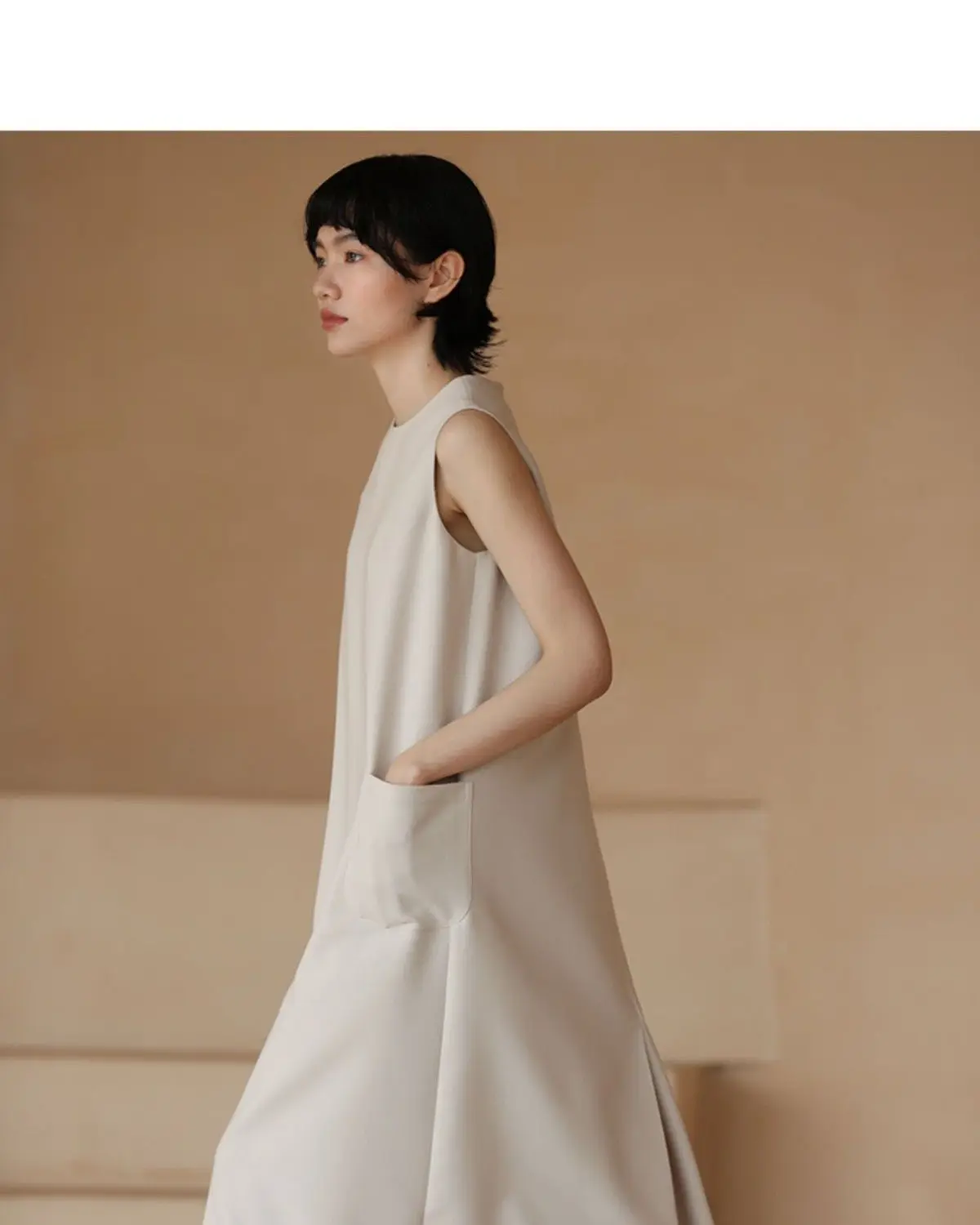Vireous Minimalist Sleeveless Loose Midi Tank Dress
