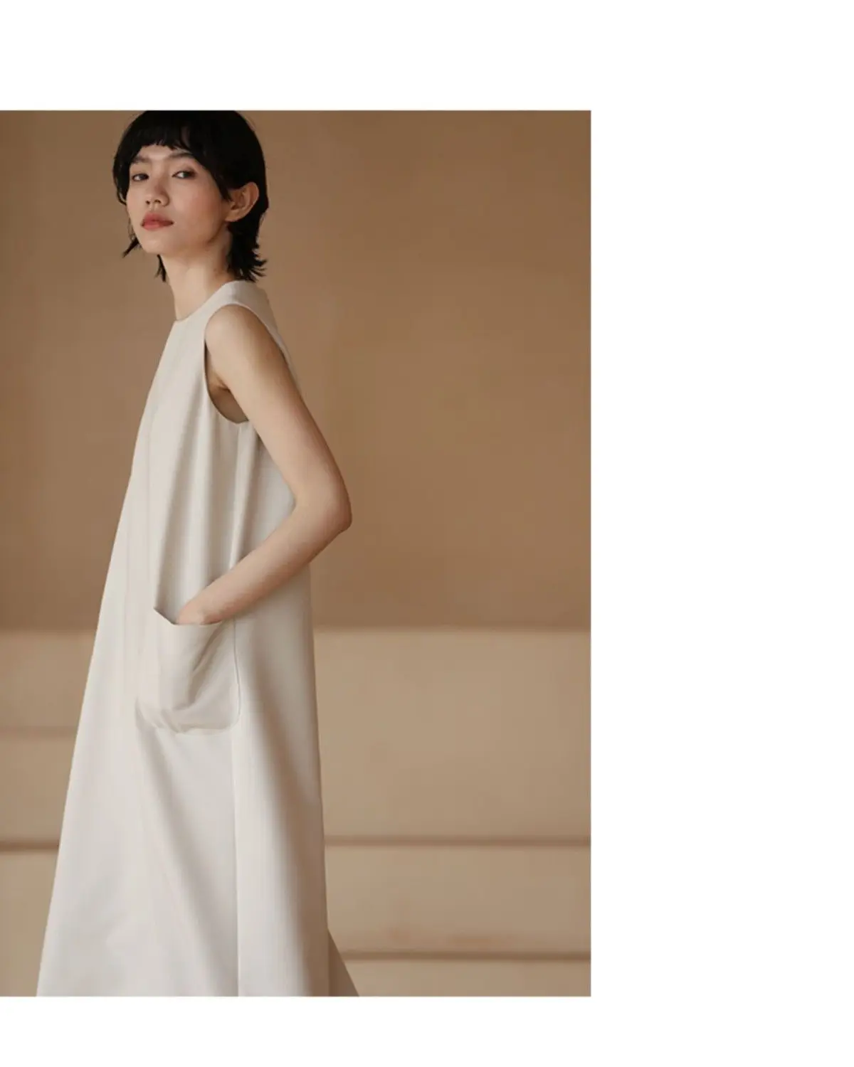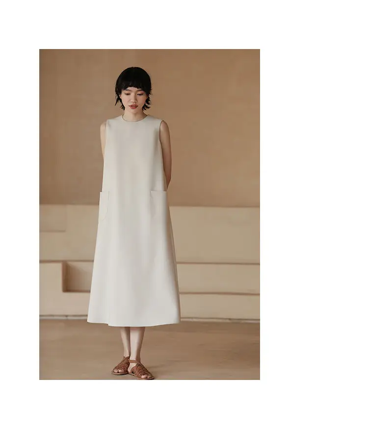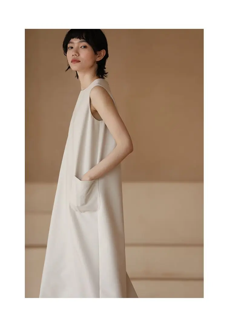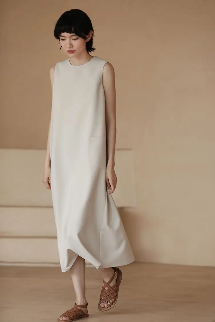 Vireous Minimalist Sleeveless Loose Midi Tank Dress