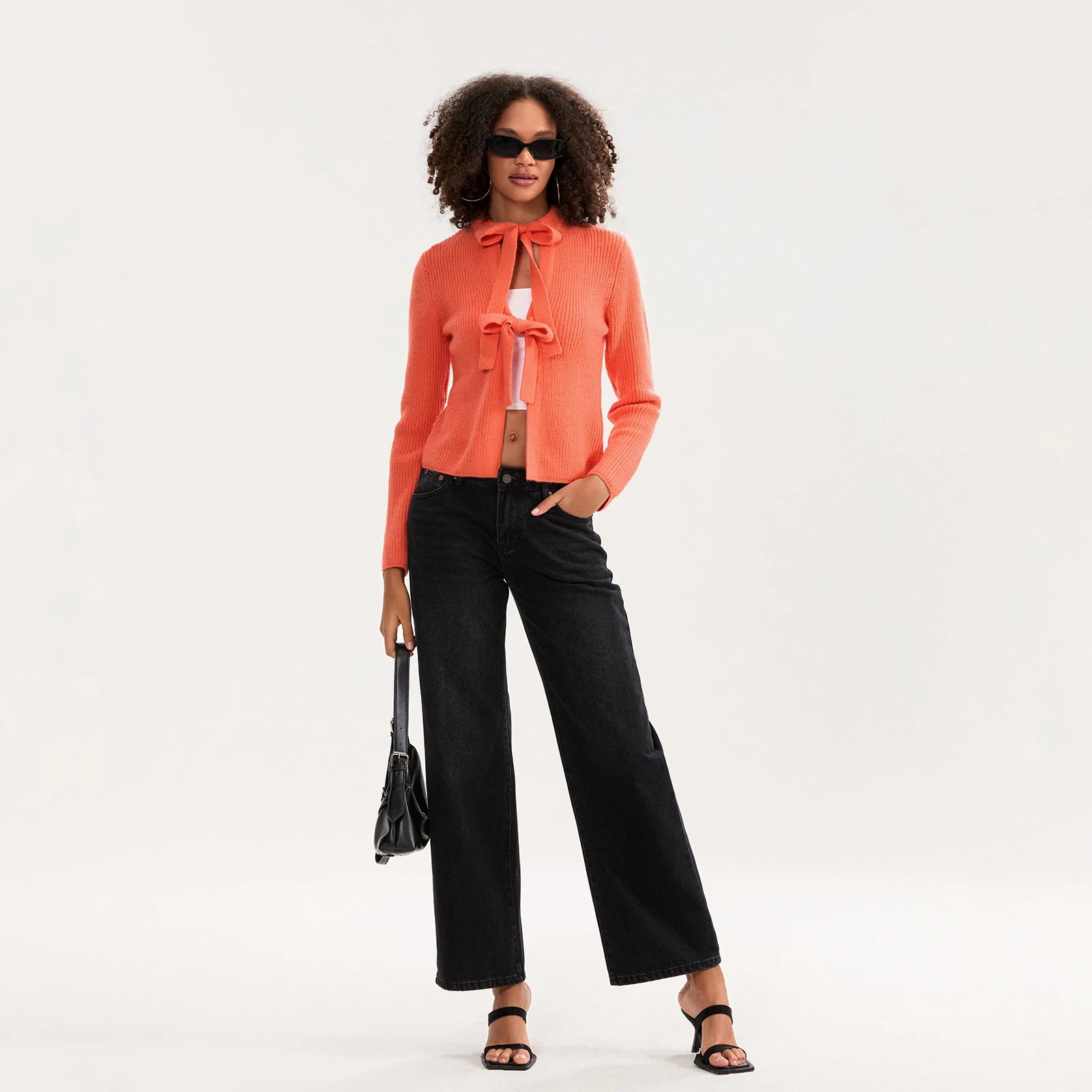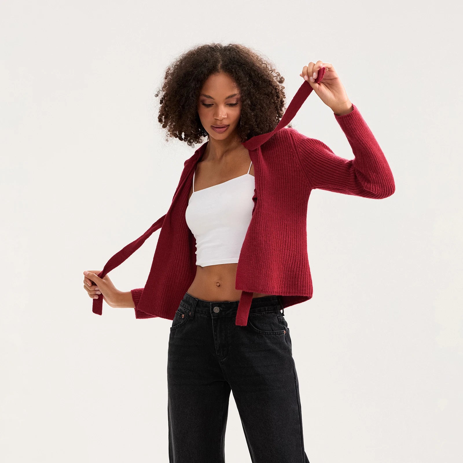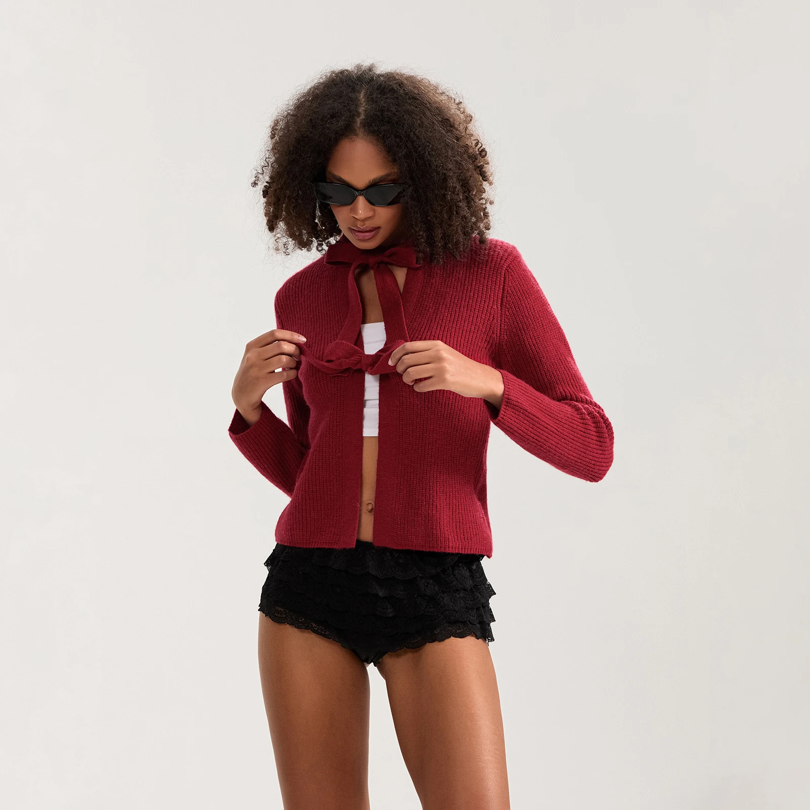 Bow Tied Front Knitted Women's Cardigan, Multi Colours